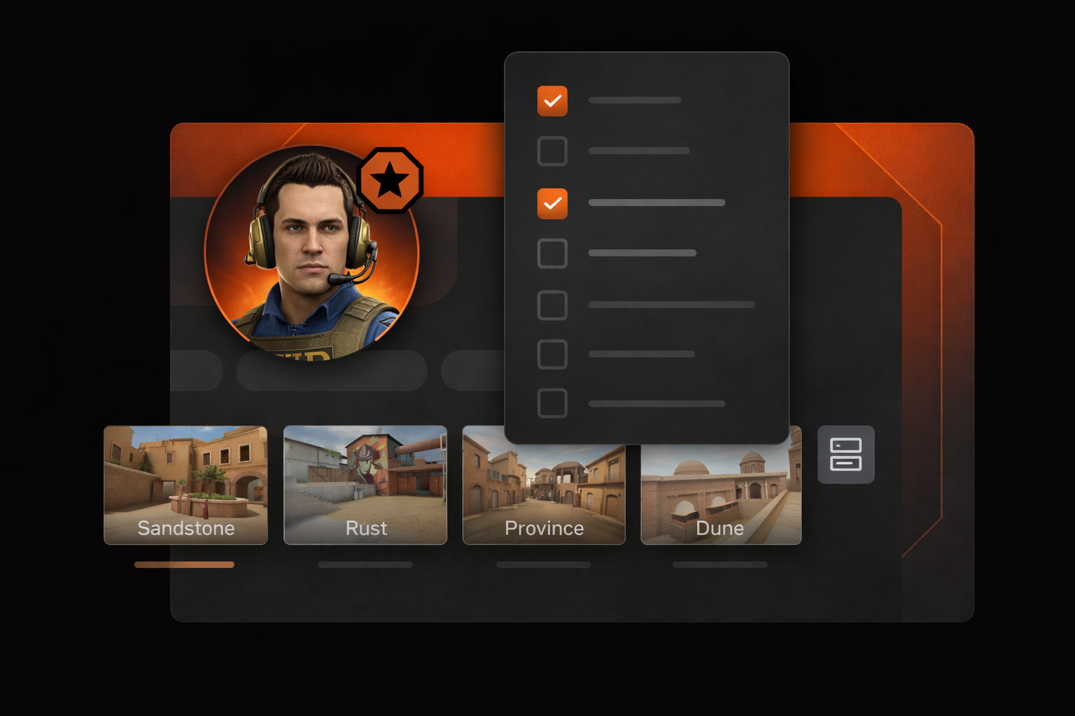 Выбирайте любимые карты, а в роли капитана определяйте настройки игры (карту и сторону защиты/атаки), которые лучше всего подходят под стратегию вашей команды. Играйте по своим правилам и сосредоточьтесь на главном — на самом процессе.